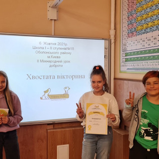 6 жовтня 2021 року за ініціативи Благодійного Фонду «Щаслива лапа» в школі І-ІІ ступенів 18 Оболонського району міста Києва класні керівники провели ІІ Міжнародний урок доброти. Під час уроків учні обговорили, що вони знають про друзів наших менших, чому потрібно захищати тварин, переглянули відеоролики присвячені гуманному та відповідальному ставленню до тварин, пограли у «Хвостату вікторину», брейн-ринг «Що ми знаємо про котів і собак», зробили аплікацію «Хатка для Малятка», а ще перетворилися на «первісних» людей і пішли прикрашати свої печери наскельними малюнками диких істот.